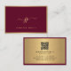 Custom Modern Elegant Professional Design Calligraphy Script Monogram QR Code Template Euro / Europe / European Size Semi-Gloss Luxury Bordeaux And Gold Business Cards. Ideal for Real Estate Agents, Accountants, Realtors, Brokers, Attorneys, Lawyers, Doctors, Corporate Professionals, Stylists, Architects, Engineers, Directors, Managers, Consultants, Designers, Teachers, Musicians, all professions.