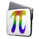 Evan, age 5, wanted a Pi design with a rainbow coloring. I made 2 designs for him to choose from; this is the second. It features the digits of Pi in black, on a rainbow-colored Pi.