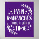 Inspirational quote "Even Miracles Take a Little Time" designed with beautiful typography, would spread positivity around you!