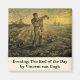 Evening: The End of the Day (after Millet) by Vincent van Gogh is a vintage fine art post impressionism daily life portrait painting featuring a peasant farmer at the end of a long day of work in the fields farming potatoes. He is putting his jacket back on and getting ready to head home at sunset.
