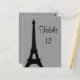 A simple Eiffel Tower silhouette decorates this table number postcard, adding french flair to your evening. This postcard is part of a complete wedding collection; however, if additional pieces are needed, just let us know at prettyfancyinvites@gmail.com.
