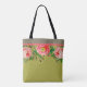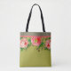 Elegant floral garden inspired fashion tote. This lovely quality reusable tote is embellished with beautiful hand painted floral patterns and vintage roses. A stylish carry-all for your day to day errands. Perfectly suited for the office or a trip to the gym - this quality custom carry-all is appropriate for every occasion. A truly elegant bright pink rose blossom pattern on a quality tote bag. Customizable in your choice of background color, (this item shown in spring green) size and style options. Practical and very stylish.