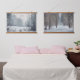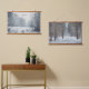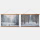 Nature-themed Hanging Tapestry in soft grey and blue tones: forest power line at the snowy magical evening and a path through a winter forest. Perfect choice for minimalist, rustic or Scandinavian styl interior.