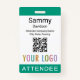 Personalize our professional attendee badge with your logo, attendee name, and other custom text. It's pvc plastic and available with a lanyard, clip, or a retractable reel. Designed in emerald green and other colors with a modern minimalist design by MISOOK. All colors are customizable. You can optionally add content to the back side. Easily customize the attendee title (VIP guest, visitor, speaker, etc). No minimum order quantity and no setup fee.
