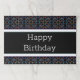 Orange, teal, black, purple, and blue patterned paper placemats, a 25 piece set, personalize text to suit any celebration.