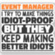 Funny Event Manager Sayings "Event Manager I Try To Make Things Idiot Proof But They Keep Making Better Idiots". Grab this Funny Event Manager design as a funny gifts for an awesome mom, dad or friend.