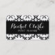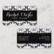 Elegant Damask Pattern Event Planner Business Card design by Elke Clarke ©. More colors and styles available at www.zazzle.com/damaskgallery. A beautiful, versatile design of black and white damask with an black line background. Your name and occupation are on the front of the card in an trendy script font and your business information is on the back. Customizable with your information and background color.