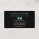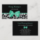 Girly black and white giraffe print event planning business cards for the event planner with a pretty mint green ribbon tied into a cute bow. Personalize this trendy animal print design by adding the name of the professional event coordinator or party planner. Flat printed image, not actual bow.