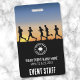 Running Marathon Staff Special Event Badge. Great for marathons, 5K events, cross country or track meets. Features runner shilloutes with a sunset sky of blue, orange and yellow. At bottom is a bold font with Event Staff, the event name, date, and spot to put your logo. You can change all of the text information and font colors of this badge. It can also work for VIPs, press, and more special titles. You can even use a different photo if you want, but it may not fade to black as well at bottom.
