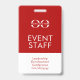 Special event staff ID badges that include a logo template you can replace with your company or event logo or graphic. Designed for corporate, party, concert, or convention staff and security.