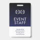 Special event staff ID badges that include a logo template you can replace with your company or event logo or graphic. Designed for corporate, party, concert, or convention staff and security.