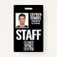 This simple and professional design features a black background. The template is easily customizable, just staff name, job title, employee ID. The bottom edge has a QR code that can be changed to any desired title. The back has your contact information and instructions for returning if found. This classic design works well for any type of event.