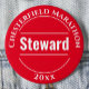 A badge for an Event Steward. Change the wording to your details. Steward badge. Official Steward badge. Red and white.