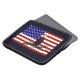 A Bald Eagle scans the sky from his perch on a tree branch; superimposed on a flag of the United States.