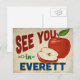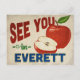 A charming Everett Washington vintage travel postcard featuring a lovely red apple, along with fun retro style text that says, "See you in Everett"