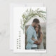 Photo Holiday Card featuring an arch template for your photo with evergreen florals. Customize with your information. Click "click to customize further" to change the font style, size or color.