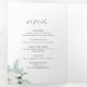 Evergreen & Cotton Flower Bouquet Wedding Tri-Fold Invitation