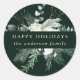 Evergreen & Cotton Flowers Happy Holidays Green Classic Round Sticker