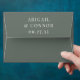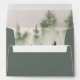 Elements: watercolor mountain scene with elegant, contemporary serif fonts. Colors: green, hunter green, highland green, white, white mist, gray, slate. Themes: modern, outdoor wedding, mountains, rustic, woodsy, outdoorsy, forest, woodland, nature, hiking, rocky mountains, sierra nevadas, blue ridge mountains, smokey mountains. Collection: Evergreen Mountain Mist Rustic Winter Wedding Collection. Product Type: Envelope