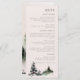Elements: watercolor mountain scene with elegant, contemporary serif fonts. Colors: green, hunter green, highland green, white, white mist, gray, slate. Themes: modern, outdoor wedding, mountains, rustic, woodsy, outdoorsy, forest, woodland, nature, hiking, rocky mountains, sierra nevadas, blue ridge mountains, smokey mountains. Collection: Evergreen Mountain Mist Rustic Winter Wedding Collection. Product Type: Menu
