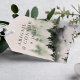 Elements: watercolor mountain scene with elegant, contemporary serif fonts. Colors: green, hunter green, highland green, white, white mist, gray, slate. Themes: modern, outdoor wedding, mountains, rustic, woodsy, outdoorsy, forest, woodland, nature, hiking, rocky mountains, sierra nevadas, blue ridge mountains, smokey mountains. Collection: Evergreen Mountain Mist Rustic Winter Wedding Collection. Product Type: Names Sticker