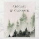 Elements: watercolor mountain scene with elegant, contemporary serif fonts. Colors: green, hunter green, highland green, white, white mist, gray, slate. Themes: modern, outdoor wedding, mountains, rustic, woodsy, outdoorsy, forest, woodland, nature, hiking, rocky mountains, sierra nevadas, blue ridge mountains, smokey mountains. Collection: Evergreen Mountain Mist Rustic Winter Wedding Collection. Product Type: Wine Label