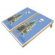 Natural Wood Cornhole Set, Royal Blue and Yellow bags