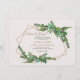 Artistically arranged, beautiful greens and two interlocking "gold" frames surround the wording of your event in this elegant wedding invitation. This card is featured on LINEN paper, MATT finish and rounded corners. Want to save money? Order the card with basic card stock, semi-gloss finish and square corners. (<a href="https://www.freepik.com/free-photos-vectors/background">Background vector created by rawpixel.com - www.freepik.com</a>). The card is easy to customize with your wording, font, font color and choice of six paper types.<br/><br/>Not exactly what you're looking for? All our products can be custom designed to meet your needs at no extra charge.<br/><br/>Simply contact us at askcottonlamb@gmail.com<br/><br/>Coordinating products available: Evergreen RSVP Cards.