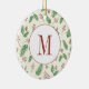 Evergreen Winter Floral Initial Monogram Christmas Ceramic Ornament