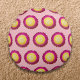 Seamless pattern of Everlasting flower with deep pink petals and yellow disk printed on round throw pillow. Floral design pillow for lovers of flowers and to add the beauty of nature on your chair, couch, sofa, in your bedroom or living room. You can also give it as a gift.