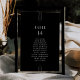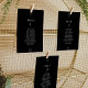 This sleek black hanging wedding seating chart cards from the Everly Collection features crisp white type, geometric art deco accents, and editorial spacing. The simple thin triple-line motifs frame elegant text for a refined, modern minimalist, evening-ready look.
