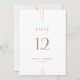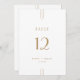 This wedding table number from the Everly Collection features a minimalist white design with slim art deco lines and warm gold type. The centered layout and generous spacing delivers a polished, modern look.