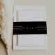 This sleek black monogram wedding invitation belly band from the Everly Collection features crisp white type, geometric art deco accents, and editorial spacing. The simple thin triple-line motifs frame elegant text for a refined, modern minimalist, evening-ready look.