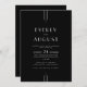 This sleek black double sided wedding invitation from the Everly Collection features crisp white type, geometric art deco accents, and editorial spacing. The simple thin triple-line motifs frame elegant text for a refined, modern minimalist, evening-ready look.