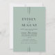 This refined art deco double sided wedding invitation from the Everly Collection features geometric line accents and retro typography on muted sage green. It’s minimal yet glamorous and ideal for modern weddings with vintage flair.