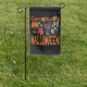 House Home And Garden Yard Flag Sign with Everyday Is Halloween original artwork design illustration by TheFabricSeal highlights together in this cute collage some of our favorite design artworks for Halloween including pumpkins, ghost, fairy, the invisible man, Frankenstein, vampire, fairies, bats, spiders and candy corn. Goth, gothic, victorian, elegant, fun, fully, silly, humor, humorous. Scare, scary, scared, fright, frightening, ghoulish, creepy, spooky. Party, celebrate, celebration, festive, partying, trick or treat, treats, candy.