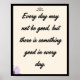 Indulge in daily inspiration with our captivating Motivational Quote Poster, adorned with the timeless wisdom: "Every day may not be good, but there is something good in every day." Embrace the power of positivity as this beautifully crafted poster effortlessly infuses your space with encouragement and optimism. Whether you're seeking a gentle reminder or a beacon of hope, this poster serves as a steadfast companion on life's journey. Each glance ignites a spark of motivation, reminding you to find the silver lining in every moment. With its elegant design and profound message, this poster transcends decor, becoming a cherished symbol of resilience and perseverance. Elevate your surroundings and uplift your spirit with this poignant reminder to embrace life's blessings, no matter how small. Inspire yourself and others with the essence of optimism captured in this exquisite piece of art.