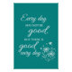 A calming and hopeful message for life’s ups and downs. This minimalist teal-and-white poster features the uplifting quote “Every day may not be good, but there is good every day,” presented in elegant script typography with delicate floral line art. Perfect for encouraging mindfulness and gratitude, this inspirational wall art brings warmth and positivity to any space. Ideal for bedrooms, living rooms, offices, classrooms, therapy rooms, or meditation spaces. It also makes a thoughtful gift for friends, loved ones, or anyone who appreciates daily encouragement. • Clean black background with white lettering • Elegant script and modern typography mix • Soft floral illustration for a peaceful feel • Meaningful gift for any occasion A gentle reminder to find the good—every single day.