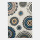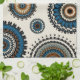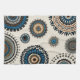This Bohemian design features multiple different kinds of mandalas over a cream beige background, Accented in Navy Blue and brown colors.