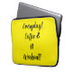The sleeve is made of nice feeling material and seems very durable. I'm not sure how easy it'll be to clean, but the construction seems sound and the fabric is quick thick. I also like the double zipper. The printing is lovely and appears durable. The white on black contrast is nice, and the design very elegant.