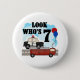 A police cruiser, fire engine, balloons, and text that reads "Look Who's 7" is featured on our Everyday Heroes 7th Birthday design.