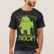 My 11 yo wore adult XL (5’7” 165#). The 8yo is small framed. She wore adult small and tied it in the back. Grandma wore adult large with long sleeve shirt underneath. Tall girl adult medium. Dark haired male adult large. Good quality dark Heather gray, Gildan brand shirt. -it was next up from basic choice and cost about $20 per shirt. Not too thick or thin. Washed and dried well, no major shrinkage. Not see-through. Can wear a bra under it fine. Screen print is just as shown and well done, front and back.