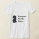 My overall review is that the T-shirt is nice, it fits true to size however the font is significantly smaller than advertised and you can't read it. The printing is unreadable and there is a strain to read it. It does not look like the advertised product. Maybe the shirt color is darker or a larger more visible font should have been used. Photos with and without flash and font is barely legible.