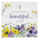 Wall poster with the scripture verse from Ecclesiastes 3:11, "He has made everything beautiful in its time" surrounded by lovely yellow and purple flowers. Designed by Simply Scripture; elements from The Hungry Jpeg.