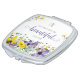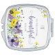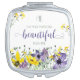 Ladies compact mirror with lovely yellow and purple flowers and scripture verse from Ecclesiastes 3:11, "He has made everything beautiful in its time." Designed by Simply Scripture; elements from The Hungry Jpeg.