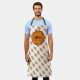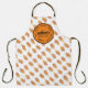 This apron design has at the feeling of Fall. The background is white with the pattern of a fall leaf. The design at the top has a pick up truck and pumpkins. The text in the circle reads "BONFIRES • SWEATERS • FALLING LEAVES • PUMPKINS • CIDER • HAYRIDES".
