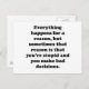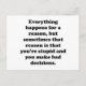 Everything happens for a reason, but sometimes that reason is that you're stupid and you make bad decisions.