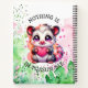 Cute double sided notebook with cartoon opossums with possum inspirational quote puns. Cute pink possum in flowers. Background is sage green and pink.