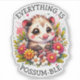 Cute stickers with cartoon opossums with possum pun. Cute pink possum in flowers.