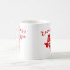 This coffee mug contains a red graphic and text in the shape of the state of Texas.